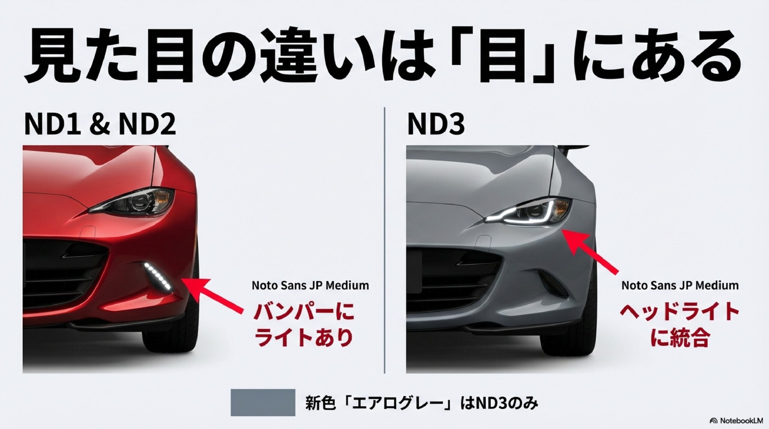 | エクステリア項目 | 前期・中期型(ND1/ND2) | 後期型(ND3) |