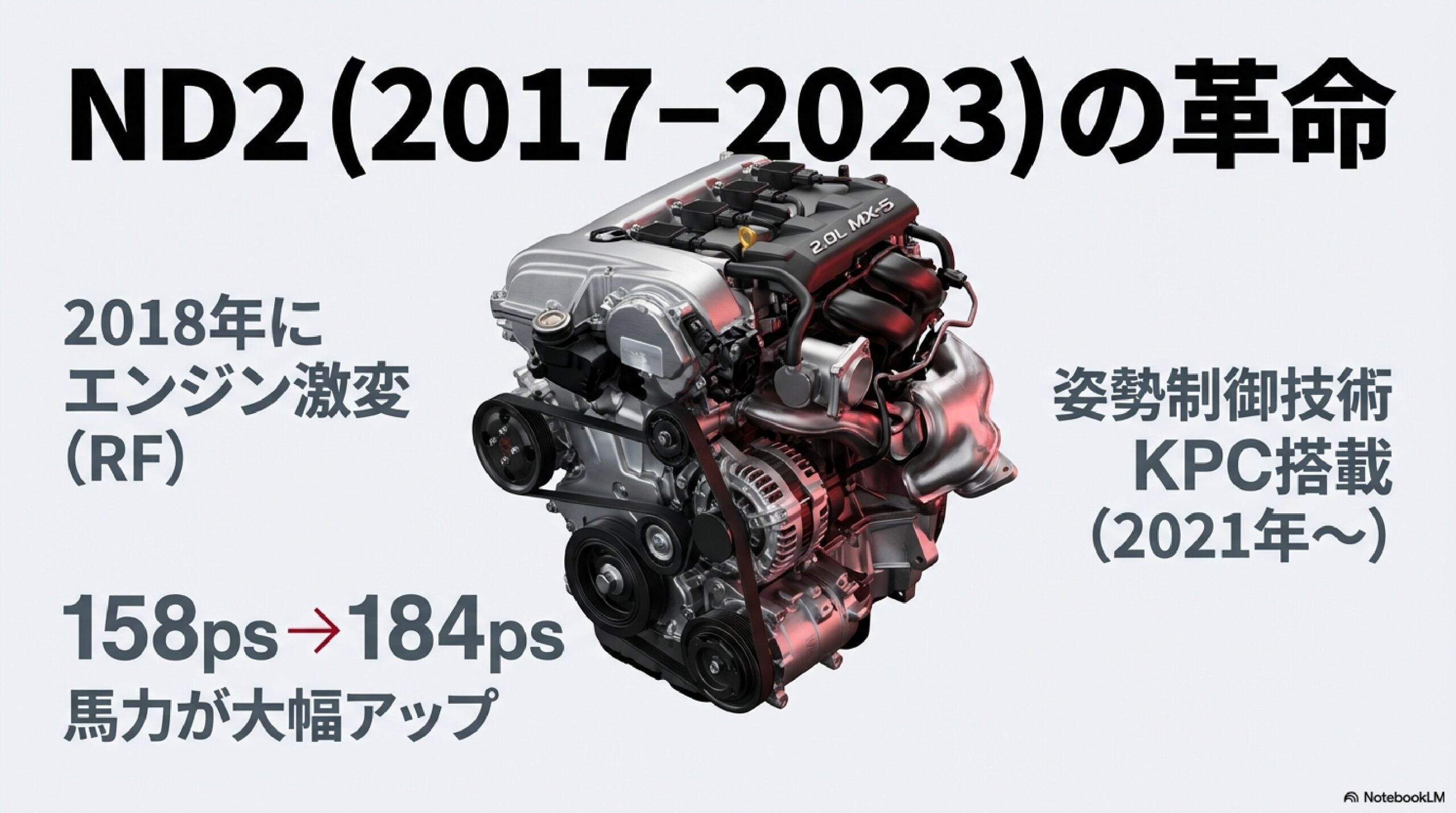 | 中期型(ND2) | 2017年11月~2023年12月 | ND5RC / NDERC | 2.0L出力向上、KPC導入、990S展開 |
